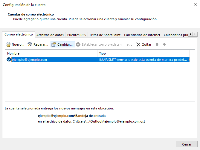 A continuación, selecciona la cuenta que necesitas modificar y pulsa sobre la opción Cambiar: