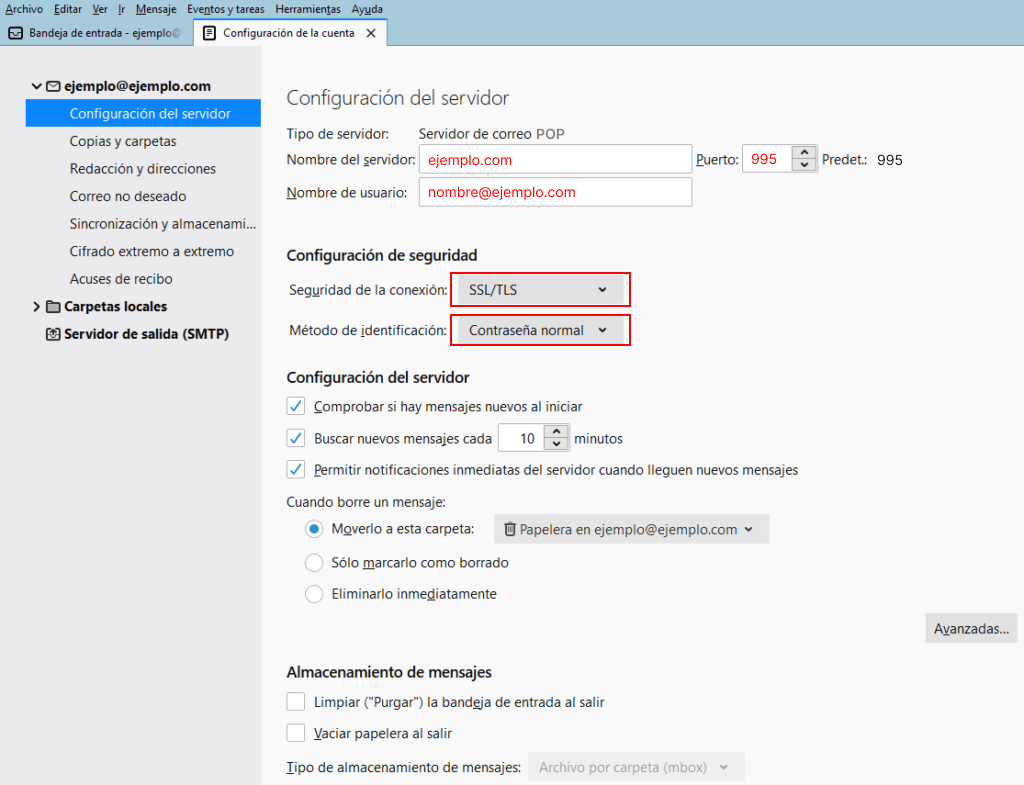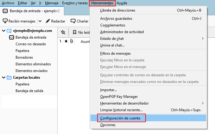 Editar la configuración de correo en Thunderbird