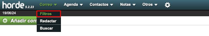 - Clic sobre botón correo y cuando se abra el menú haz clic sobre la opción filtros.