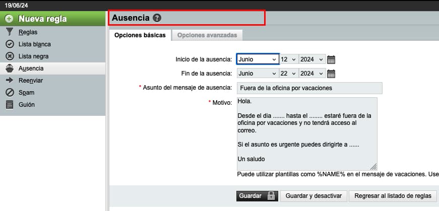 Para configurar una respuesta automática en tu correo corporativo, tienes que seguir estos pasos: