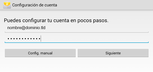 - Introducimos la cuenta de correo y la contraseña. Accedemos a ‘Configuración Manual’.
