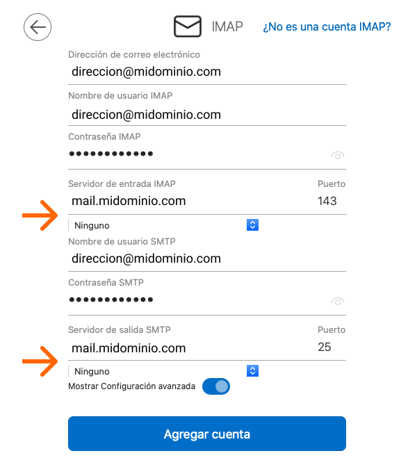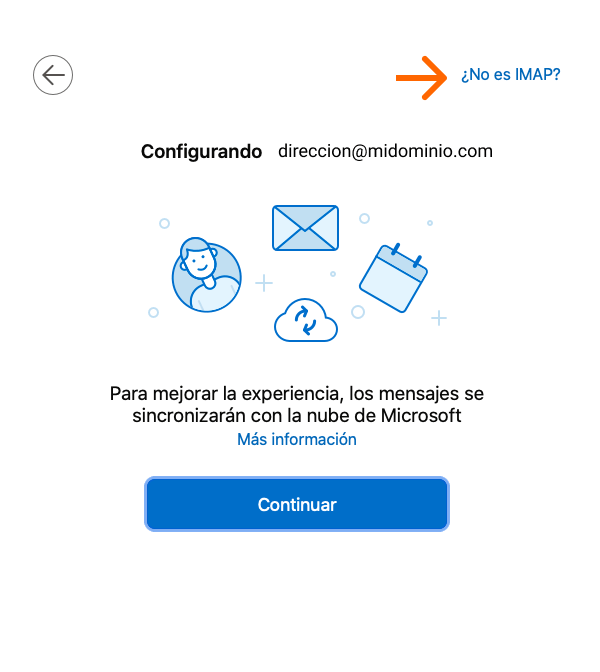 - En la siguiente ventana pinche en la opcion ¿No es IMAP?